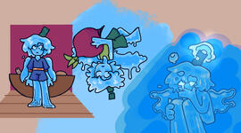 Descripción. | Los allays viven menos de tres siglo, normalmente subordinados al mismo amo. Splash es de los pocos que decidió viajar por su cuenta, lleva años viajando entre dimensiones. Trabajó como ayudante y aprendiz para diversas brujas y otros entes, le gusta la magia. |